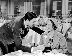 For Stewart, in his first starring role,[10] he later recalled, "The only way to learn to act is to act ... For instance, I would have a tiny part in a big picture with stars like Clark Gable and Jean Harlow and others, and then I would have a big part in a tiny picture [Speed] and so on."[9] During a hectic period, from 1935 to 1939, Stewart appeared in 29 motion pictures. The roles spanned a wide gamut of characters, from a mechanic/speed driver as he portrayed in Speed to that of a detective, doctor, executive, farmer, football star, lawyer, newspaperman, rustic "hayseed", soldier/sailor, skater, teacher, and even a murderer.[11] Stewart considered Speed a good training ground, "I did a picture called 'Speed' which gave me my first leading role ... although it was a low-budget picture ... and Ted Healy, who played my best friend, told me, 'Think of the audience as partners ... as collaborators ... not just watchers. You have to involve them'."[12][N 4]