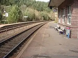Speicher station is on the Eifel Railway which runs between Trier and Cologne. The station is located between the outskirts of Speicher and Röhl.