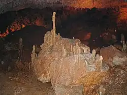 A speleoseismite is a damaged speleothem (cave deposit) argued to have been deformed by a seismic event (an earthquake). Speleoseismites can include severed stalagmites (those growing from the floor), fallen stalactites (those growing from the ceiling of caves), collapsed cave ceilings, tilted speleothems, change in growth axis of speleothems, stalactite-stalagmite pair displaced from one another and others. These seismites can be used in paleoseismological studies of ancient earthquakes.