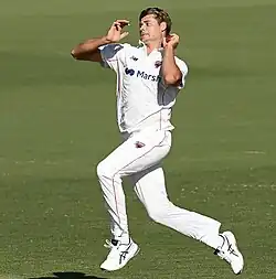 ![]() Spencer Johnson bowling for South Australia in the Sheffield Shield | ||||||||||||||||||||||||||||||||||||||||||||||||||||||||||||||||||