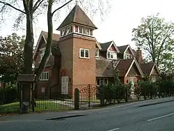 In spite of its growth, Spencers Wood was still split between the ecclesiastical parishes of Shinfield, Swallowfield and Grazeley. This changed in 1908 when the Church of St Michael and All Angels was consecrated. The ecclesiastical parish of Spencers Wood was created five years later, although some parts of the village remained in the parish of Grazeley. In 2004 the parishes of Spencers Wood and Grazeley with Beech Hill were united under a single PCC, and the same year became part of the United Benefice of Loddon Reach.[9] Also in 1908, Lambs Lane school opened, ending the need for older children to walk to Swallowfield's Russell Hall, Shinfield or Grazeley School.[10] The Arts and Crafts-style Village Hall was opened in 1911 and is run by a board of trustees on behalf of the village inhabitants.[11]