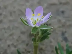 It is an annual or perennial herb producing a narrow stem lined with fleshy linear leaves. The small flowers are 8 to 12 mm across with five petals which are usually slightly longer than the sepals.[5] The five petals are oval white or pink-tinged. The tiny seeds have winged margins. It has 10 stamens.[5][6]