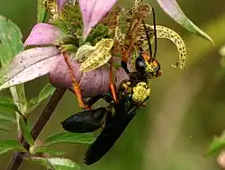 - ^ "Sphex flavovestitus species Information". BugGuide.net. Retrieved 2019-09-24.