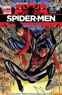 Spider-Men is a five-issue, 2012 superhero comic book miniseries published by Marvel Comics, featuring Peter Parker, the original Spider-Man, and Miles Morales, the second and current Ultimate Marvel version of Spider-Man, who appear together in a crossover storyline that involves the two alternate universes from which they each originate. The series is written by Brian Michael Bendis and illustrated by Sara Pichelli.[1][2] It marks the first time that characters from the original Marvel Universe and the Ultimate Universe have crossed over since the latter debuted in 2000.