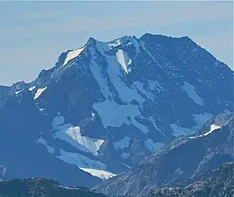 Spider Mountain is an 8,317-foot (2,535-metre) mountain summit located in the Glacier Peak Wilderness in western Chelan County of Washington state.[4] It is part of the North Cascades, which is a subset of the Cascade Range. Meltwater from the Spider Glacier on the steep north face, and other surface runoff from the mountain drains into Flat Creek, which is a tributary of the Stehekin River. Topographic relief is significant as the summit rises 4,200 feet (1,300 meters) above West Fork Flat Creek in one mile (1.6 km). The nearest higher neighbor is Mount Formidable 1.5 miles (2.4 km) to the west.[2] The Middle Cascade Glacier lies between these two mountains and the Ptarmigan Traverse passes between the two.