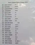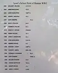 Seventy Old Spierians made the supreme sacrifice and the war memorials were a central feature of the old school buildings. The memorial is now in storage at the North Ayrshire Museum in Saltcoats, awaiting a suitable location for re-erection. The school also had a Garden of Remembrance composed of a rose garden within a square of yew hedges and an internal path. This was under restoration by the YMBB youth group in 2012.