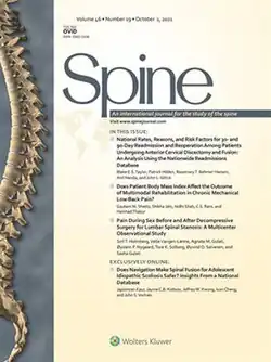 Spine is a biweekly peer-reviewed medical journal covering research in the field of orthopaedics, especially concerning the spine. It was established in 1976 and is published by Lippincott Williams & Wilkins. The current editor-in-chief is Andrew J. Schoenfeld, M.D.. Spine is considered the leading orthopaedic journal covering cutting-edge spine research. Spine is available in print and online. Spine is considered the most cited journal in orthopaedics.[1]