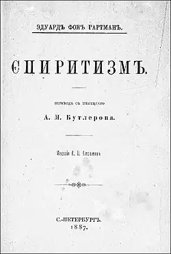 - ^ His "Answer for Hartmann" Aksakov began to print in parts in a German journal Psychische Studien immediately after the publication of this book. In 1890, it was published as a single edition entitled Animismus und Spiritismus.[61]