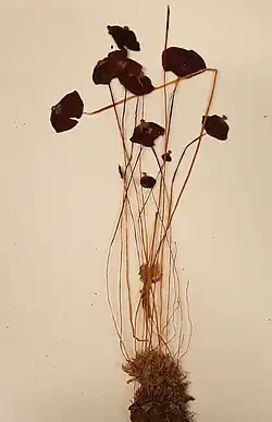 | Dried herbarium sample of S. rubrum, with the distinctive flower-like sporophyte | |