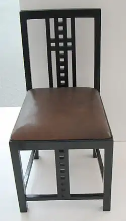 A splat is the vertical central element of a chair back.[1] Typically this element of a chair is of exposed wood design. The splat is an important element of furniture identification, since its design has a multitude of variations incorporating the themes of different furniture periods. Chippendale's furniture was designed using varied splat details to include Gothic, Chinese, English and some with French details.