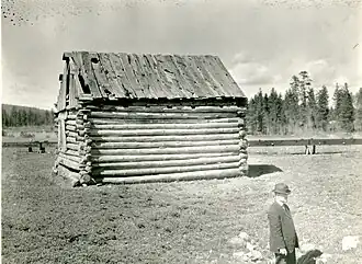 Spokane House was created under direction of David Thompson and built by Jaco Finlay during the winter of 1810–1811.[2] Finlay would remain among the Sqeliz until Thompson's return later in 1811. Visiting the station in June 1811, Thompson noted that Spokane House was the place "where I left a small assortment of Goods to continue the trade, there were forty Tents of Spokane Indians, with Jaco, a half breed, as Clerk."[3] Thompson would soon depart for the mouth of the Columbia River, discovering the rival Fort Astoria.