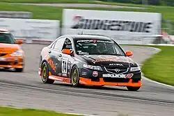 Sport Touring (ST), also known as Street Tuner, is a former set of regulations for production-based race cars, originally by the SCCA, and later by Grand-Am and IMSA, for the Canadian Motorola Cup[1] (later known as the Grand-Am Cup, KONI Sports Car Challenge/Challenge Series, and finally the Michelin Pilot Challenge), between 1997 and 2018. Class rules dictated these cars have smaller displacement engines, with 4, 5 or 6 cylinders, typically producing around 170 hp (130 kW) to 240 hp (180 kW), typically consisting of smaller sedans, hatchbacks, coupes, and convertibles. Examples of cars competing in this class included the Acura RSX, Acura TSX, Chevrolet Cobalt, Lexus IS300, Mazda RX-8, BMW Z3, BMW 330i, Acura Integra Type R Mini Cooper S, and the Subaru Legacy.[2][3]