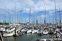 Cowes is a centre for sailing, hosting several racing regattas. Cowes Week is the longest-running regular regatta in the world, with over 1,000 yachts and 8,500 competitors taking part in over 50 classes of racing.[4] In 1851 the first America's Cup race was around the island. Other major sailing events hosted in Cowes include the Fastnet race, the Round the Island Race,[5] the Admiral's Cup, and the Commodore's Cup.[6]