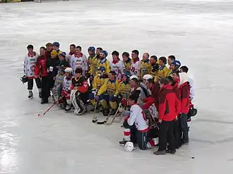 China started a bandy development programme by organising educational days in Ürümqi in June 2009.[10] They did not come as planned to the 2011 Asian Winter Games. However, China national bandy team debuted in the 2015 Bandy World Championship.[11] Harbin hosted Division B of the 2018 tournament.[12]