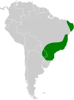 The spot-winged wood quail is native to eastern and southeastern Brazil, the extreme northeastern part of Argentina and the eastern part of Paraguay. It inhabits dry lowland forest, including secondary forest, at altitudes not exceeding 1,600 m (5,200 ft).[5]