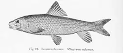 Spotted suckers have a dark spot at the base of each scale giving them the appearance of having many rows of small black spots on their body and can reach about 19 inches.[3]