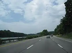 The section of the Sprain Brook Parkway between Tuckahoe Road and Jackson Avenue in the town of Greenburgh was slated to cost $4.103 million ($43 million in 2024), a stretch of 2.6 miles (4.2 km) with 3.45 miles (5.55 km) of access roads. This new portion would have six lanes, with three on each side of the Grassy Sprain Reservoir, which would split the parkway in each direction. Bids were expected to be opened on November 16, 1961, for the extension of the new parkway, maintained by the East Hudson Parkway Authority.[19] The new stretch of parkway was constructed throughout 1962 and 1963, with the East Hudson Parkway Authority announcing the opening of the extension on December 23, 1963, at a cost of $3.6 million ($37 million in 2024). The new interchange with Jackson Avenue would also serve Sprain Ridge Park, which was also being opened at the same time as the new parkway.[20]