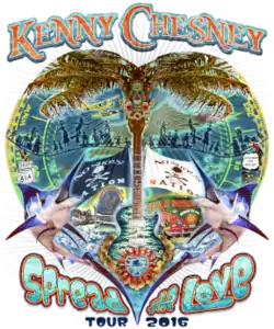 The Spread the Love Tour was the fifteenth headlining concert tour by American country music artist Kenny Chesney, in support of his seventeenth studio album Cosmic Hallelujah (2016). It began on April 23, 2016 in Auburn, Alabama and finished on September 9, 2016 in Bristol, Tennessee. The tour was first announced in October 2015.