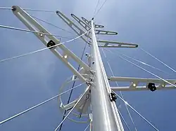 A spreader is a spar on a sailing boat used to deflect the shrouds to allow them to better support the mast.[1] The spreader or spreaders serve much the same purpose as the crosstrees and tops in a traditional sailing vessel. [2]