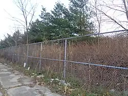 The area is designated by the Parks Department as a "Forever Wild" nature preserve site, and is inaccessible to the public.[17][16][20] Because of this, the property is entirely lined with chain-link fencing.[18]: 5–11 According to the Parks Department, this area is the "largest undeveloped salt marsh in northern Jamaica Bay", and serves as a habitat for numerous bird species as well as land animals.[19][17][21] In spite of its status as "Forever Wild", Spring Creek North contains two major waste disposal facilities.[21][22] A water treatment plant, the Spring Creek Auxiliary Water Pollution Control Plant, is in this section near the intersection of Fountain and Vandalia Avenues.[2][4]: 3, 8–9 (PDF p.19, 24–25) [21][23] Farther north along Forbell Street is the former South Shore Incinerator,[24][25][26] now used as a cleaning garage and composting facility by the New York City Department of Sanitation.[27][21][28][29] Like Spring Creek South, this area was also subjected to garbage landfilling.[1]: 5–6 [30]: 15, 26 [26] The site of the water treatment plant was initially the Crescent Street Landfill. This was later replaced by the South Shore Landfill, which extended north to Stanley Avenue and received ash from the incinerator.[30]: 26 A narrow concrete berm bridge crosses the Spring Creek waterway along the right-of-way of 157th Avenue, separating the remnants of the creek. The bridge may have been used for landfilling operations, and contains within it a combined sewage overflow pipe leading to the water treatment plant.[5]: 6–7 [26] The presence of the two waste facilities has led to criticism by park advocates and local residents.[21][22][31]