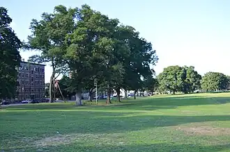In Spring of 1905, the driving park's races came to an end when, following a series of failed negotiations the city's park commission acquired the land by eminent domain, renaming it at the time Riverside Park.[18] During that summer the city hired the respected Olmsted Brothers firm, sons of Frederick Law Olmsted of Central Park fame, to redevelop the site as a mixed use park, following a year of study their plans, which included a cricket pitch, baseball fields, a wading pool, track, and gym facilities, were completed in the summer of 1906.[19][20]