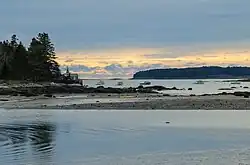 The village of Spruce Head lies partly in the township of South Thomaston and partly in the township of St. George and is connected by a bridge to Sprucehead Island, which is entirely within the borders of South Thomaston. The island faces the Muscle Ridge Islands to the east across a navigable channel. Seal Harbor is a well-protected anchorage formed by the southern shore of Sprucehead Island, the eastern shores of Patten Point and Rackliff Island, and the northern shores of Norton Island and Whitehead Island. Spruce Head village centers on the post office, Spruce Head Community Church (built in the late 19th century[4]), and the Spruce Head Community Hall (built in 1923[5]). An adjacent boatyard provides facilities for launching, recovering, and storing fishing vessels and pleasure craft.[6] Rackliff Island, reached from the mainland by a causeway, is inhabited by several hundred households; it lies within St. George township. An additional hamlet considered part of Spruce Head is found along Clark Island Road on the western shore of Wheeler Bay and also lies within the township of St. George. It affords access to the Clark Island Preserve, a part of the Maine Coast Heritage Trust and is also the location of the headquarters of the Hurricane Island Outward Bound School.[7]