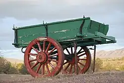 Unsprung vehicles, meaning without any springs, were simple sturdy two-wheeled vehicle used by roadmen, farmers and tradesmen. They would be used at slower speeds or carrying heavier loads, such as farm carts, those carrying coal or peat, and some heavy delivery vehicles. Farm wagons were usually unsprung, as were most of the freight and dray vehicles such as lorries and trollies.[1]: 79 A vehicle without springs was also called a dead axle.[2] The bandy of India is an unsprung cart.[2]: 11