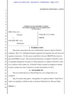 Spry Fox, LLC v. Lolapps, Inc., No. 2:12-cv-00147 (W.D. Wash., 2012),[1] was a court case between two video game developers, where Spry Fox alleged that the game Yeti Town, developed by 6waves Lolapps, infringed on their copyrighted game Triple Town. While the case was settled out of court, preliminary opinions by Judge Richard A. Jones affirmed that a video game's "look and feel" may be protected by copyright, affirming the federal district court decision in Tetris Holding, LLC v. Xio Interactive, Inc. from earlier the same year.
