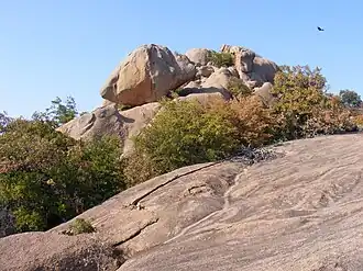 As with Enchanted Rock, Spy Rock is formed of middle Precambrian (1,082 ± 6 million years ago)[2] material. The base of the peak can be reached by the public, but the dome itself is on private property and accessible only with property owner's permission.[3][4] Federal and state statutes, regulations and rules governing trespassing, archeological sites and historic sites apply.[5] The state Game Warden as a commissioned peace officer is authorized to inspect natural resources and take necessary action for the preservation of the resources.[6]