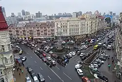 The Square of Ukrainian Heroes (Ukrainian: Площа Українських Героїв, romanized: Ploshcha Ukrainskykh Heroiv), is a city square in Kyiv, Ukraine formed by a triangle shaped intersection of three streets: Velyka Vasylkivska, Hetmana Pavla Skoropadskoho and Yevhena Chykalenka. The square gives its name to the Square of Ukrainian Heroes station, of the Kyiv Metro.