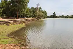 Sras Srang was dug in the mid-10th century, by initiative of Kavindrarimathana, Buddhist minister of Rajendravarman II.[1] It was modified around the year 1200 by Jayavarman VII,[2]: 125 who added the laterite landing-stage at its western side, probably because the East Baray had been overwhelmed by sediment and had begun malfunctioning.[3]