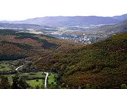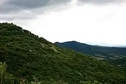 To the north, Sredna Gora extends to eight of the eleven Sub-Balkan valleys — from the southeastern limits of the Sofia Valley in the west, eastwards through the valleys of Saranska, Kamarska, Zlatitsa–Pirdop, Karlovo, Kazanlak, Tvarditsa and Sliven. The valleys of Karlovo and Kazanlak are also collectively known as the Rose Valley. Its easternmost point is the elevation of Zaychi Vrah (256 m) along the southwestern limits of the Sliven Valley just southwest of the bend of the river Tundzha.[2] Along its northern borders, Sredna Gora is linked to the Balkan Mountains through five north-south ridges — Negushevski Rid, Oporski Rid, Galabets, Koznitsa and Strazhata.[1][2]