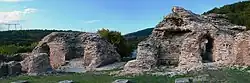 The Neolithic Dwellings Museum in Stara Zagora preserves some Europe's earliest and best conserved building remains from the early Neolithic.[14] There are many sanctuaries and megaliths from the Neolithic, such as the Buzovgrad Megalith.[50] A number of Thracian burial and cult sites have been preserved in the mountain range, such as Chetinyova Mogila and Horizont near Starosel, the former is the largest excavated Thracian tumulus, while the latter is the only Thracian tomb with columns.[51] Other important Thracian sites include Zhaba Mogila near Strelcha, the Smilovene Sanctuary deep in the mountain between Koprivshtitsa and Strelcha and the Kozi Gramadi complex north of Starosel.[52][53][54] Important Roman heritage is preserved in Hisarya and Stara Zagora, the former containing 2.3 km long well-preserved defensive walls. The remains of medieval fortresses are scattered along the mountain range, including Urvich, Gate of Trajan and Krasen.[10]