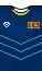 The away kit features a blue jersey with yellow dots across the chest, white player numbers and names, and matching blue shorts. Thin yellow side stripes run from under the arms to the hem of the jersey. Although introduced in 2023 alongside the home kit, the away kit has yet to be used in an official match. In the past, the team traditionally wore white as the away colour with gold coloured elements on it.