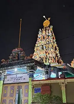 Sri Mariamman Temple is Medan's oldest Hindu Temple. This temple was built in 1884 for the worship of Goddess Mariamman.[1] The temple is situated in the area known as Kampung Madras or Medan's Little India. This temple is also devoted to the Hindu gods Ganesha and Murugan, children of Mariamman. The Gate is decorated by gopuram, namely a storey tower which can usually be found at the gate of the Hindus temples in South India. The temple is a meeting point for worshippers during Thaipusam and Deevapali festivals.