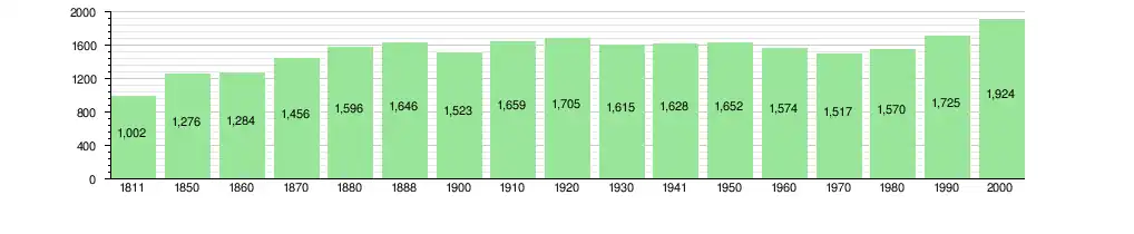 As of 2000, there were 695 private households in the municipality, and an average of 2.7 persons per household.[9] There were 150 households that consist of only one person and 92 households with five or more people. In 2000, a total of 663 apartments (91.2% of the total) were permanently occupied, while 54 apartments (7.4%) were seasonally occupied and 10 apartments (1.4%) were empty.[12] As of 2009, the construction rate of new housing units was 3.1 new units per 1000 residents.[9] The vacancy rate for the municipality, in 2010, was 0.87%.[9]