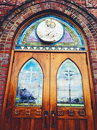 A new plot of land, between North Elm and Smith Streets, was purchased and is the current location of the church.[7] St. Katherine Drexel, who was canonized in 2000 by Pope John Paul II, gave St. Benedict's Church $1,500 to help build the current church building, with the condition that a certain amount of pews would be reserved for African-American parishioners, encouraging the church to have an integrated congregation during the time of racial segregation in the southern United States.[8] St. Benedict's used to have a Catholic school, which later was merged with St. Pius X Catholic School.[9]