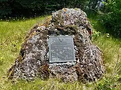 Saint Croix Island (French: Île Sainte-Croix), long known to locals as Dochet Island (/ˈduʃ/), is a small uninhabited island in Maine near the mouth of the Saint Croix River that forms part of the Canada–United States border separating Maine from New Brunswick. The island is in the heart of the traditional lands of the Passamaquoddy people who, according to oral tradition, used it to store food away from the dangers of mainland animals.[1]: 9  The island was the site of an early attempt at French colonization by Pierre Dugua, Sieur de Mons in 1604. In 1984 it was designated by the United States Congress as Saint Croix Island International Historic Site. There is no public access to the island, but there is a visitor contact station on the U.S. mainland and a display on the Canadian mainland opposite the island.