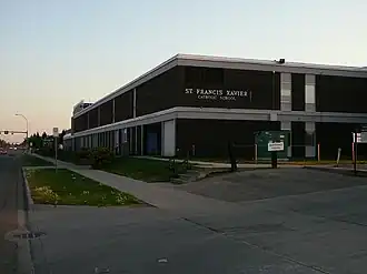 St. Francis Xavier High School is a high school in west Edmonton, Alberta, Canada. It is operated by Edmonton Catholic Schools System. The school started in 1955,[1] with the purpose built school (since expanded) opened in 1958.[2] Originally part of the Town of Jasper Place school system, St. Francis Xavier transferred to the Edmonton system when Jasper Place amalgamated with Edmonton in 1964.