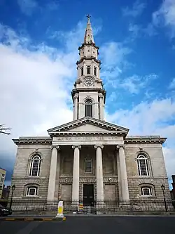 St. George's Church is a former parish church in Dublin, Ireland. Designed by Francis Johnston, it is considered to be one of his finest works. The structure is located at Hardwicke Place, just north of the city centre, though when it was opened this was considered to be in Drumcondra.[3] The elegant spire, 200 feet (61.0 m) high, became a landmark of the north inner city.[4] Along with St Andrew's Church, Chennai, it is considered one of the finest stylistic "daughter" churches to London's St Martin-in-the-Fields.