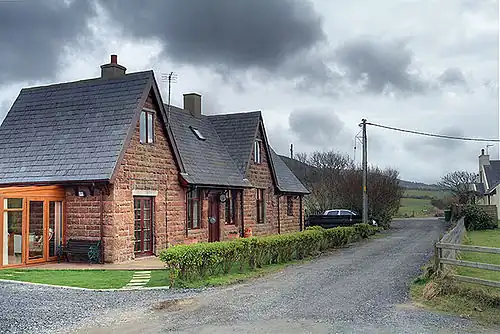 The distinctive station building is on the northern side of the small village; these days it serves as a private dwelling but its design clearly shows its origins as a station. Consisting of two tall gables and associated buildings, all constructed on local sandstone, it is of the same design as the stations at Ballaugh and Kirk Michael, both of which also still survive today.
