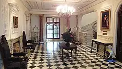 In 1899, the next owner, Sir John Nutting, improved the house greatly spending thousands of pounds.[1] The facade of the house was faced with Portland stone to harmonise the 18th and 19th century parts of the house.[2] He also remodelled the interior with Italian Carrara marble[1] and decorative plasterwork.[2] A repoussé copper frieze depicting ships and galleons made around 1900 by James Smithies of Manchester, was added to the dining room.[2]