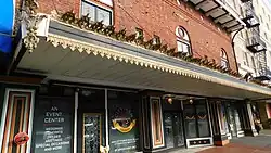 The brick-and-tile Italian Renaissance style theater, with a final renovation cost of $100,000, opened on May 12, 1924. The venue had an occupancy of 850 and was home to a $20,000 Kimball organ.[4][8][9][10][d] Billed as the "House of Hits",[12] the theater's first presented film was Sporting Youth.[4]