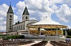 The Saint James Church is a Catholic parish church located in the village of Medjugorje, Bosnia and Herzegovina. The church was consecrated in 1969 and is a national monument of Bosnia and Herzegovina. The church is under the patronage of James the Great and is run by the Franciscan order of Bosnia. It is on the provisional list of National Monuments in Bosnia and Herzegovina[1] The church and the village are also the site of numerous and ongoing Marian apparitions since 1981, which the Vatican's Office for Doctrine (CDF) declared favorably as "nihil obstat" (meaning, nothing stands in the way) in September 2024 under newly written norms.