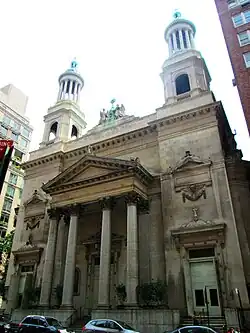 St. Jean Baptiste Roman Catholic Church, also known as the Église St-Jean-Baptiste, is a Catholic parish church in the Archdiocese of New York at the corner of Lexington Avenue and East 76th Street in the Lenox Hill neighborhood of the Upper East Side of Manhattan, New York City. The parish was established in 1882 to serve the area's French Canadian immigrant population and remained the French-Canadian National Parish until 1957. It has been staffed by the Fathers of the Blessed Sacrament since 1900.[3]