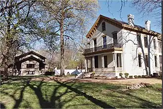 The St. Louis Street Historic District is a residential historic district located along several blocks of St. Louis Street in Edwardsville, Illinois. The district includes 59 homes, of which 51 are considered contributing to the district's historic character.[2] St. Louis Street was one of the most prestigious sections of Edwardsville in the late 1800s, and several of the city's wealthiest residents owned homes along the street. The first house on the street, a log cabin, was built by John Lusk in 1809. In the 1870s, prominent residents of Edwardsville began building homes on the south side of St. Louis Street; these houses typically had large plots and open parkland between lots. In 1883, Judge Joseph Gillespie divided and sold the land on the north side of the street; the homes built on these lots are consequently much closer together. The homes built in the district were designed in popular architectural styles of the late 1800s; while the Queen Anne style is the most prevalent, Italianate, Chateauesque, and Classical Revival houses were also built.[3]