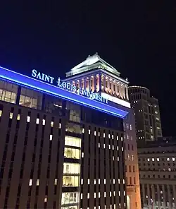 The Law School was initially founded by Richard Aylett Buckner, a Kentucky district judge, and was opened in 1843, making it the first law school to open west of the Mississippi River.[7][8] The original law school closed at some point after Buckner died in 1847. The school was re-established in 1908 in the Midtown neighborhood on the corner of Leffingwell Avenue and Locust Street.[8] In its 1908 re-establishment, the law school accepted its first female law students.[8] In August 2013, the school moved to its current location, Scott Hall, a new facility at 100 North Tucker Boulevard in Downtown Saint Louis.[8]