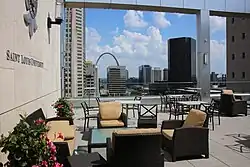 The Law School is located in Scott Hall, a 12-story facility located at 100 North Tucker Boulevard in Downtown Saint Louis.[9] The building contains classrooms; the Vincent C. Immel Law Library, named after a former professor who taught at the Law School from 1958 to 2004,[10] the school's administrative and faculty offices; event space; and a restaurant called "Chris' at the Docket." The legal clinics are housed on the 7th floor of the building. The 12th floor, which was added to the building during renovations, is almost entirely glass, is home to a court room that occasionally hears appeals for the Eastern District of Missouri and offers views of the surrounding downtown area. The school's downtown location puts it in close proximity to many law firms and city, state, and federal courts.