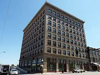 St. Louis and San Francisco Railroad Building, also known as the Frisco Building, is a historic train station and office building located at Joplin, Jasper County, Missouri. It was built in 1913 for the St. Louis and San Francisco Railroad, and is a nine-story, L-shaped, brick-and-stone-trimmed building with a decorative cornice. It measures approximately 101 feet by 127 feet and has a two-part vertical block form.[2]: 5