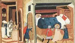 Ludmila of Bohemia (c. 860 – 15 September 921) is a Czech saint and martyr venerated by the Orthodox and the Roman Catholics. She was born in Mělník as the daughter of the Sorbian prince Slavibor.[1] Saint Ludmila was the grandmother of Saint Wenceslaus,[2] who is widely referred to as Good King Wenceslaus. Saint Ludmila was canonized shortly after her death. As part of the process of canonization, in 925, Wenceslaus moved her remains to St. George's Basilica, Prague.